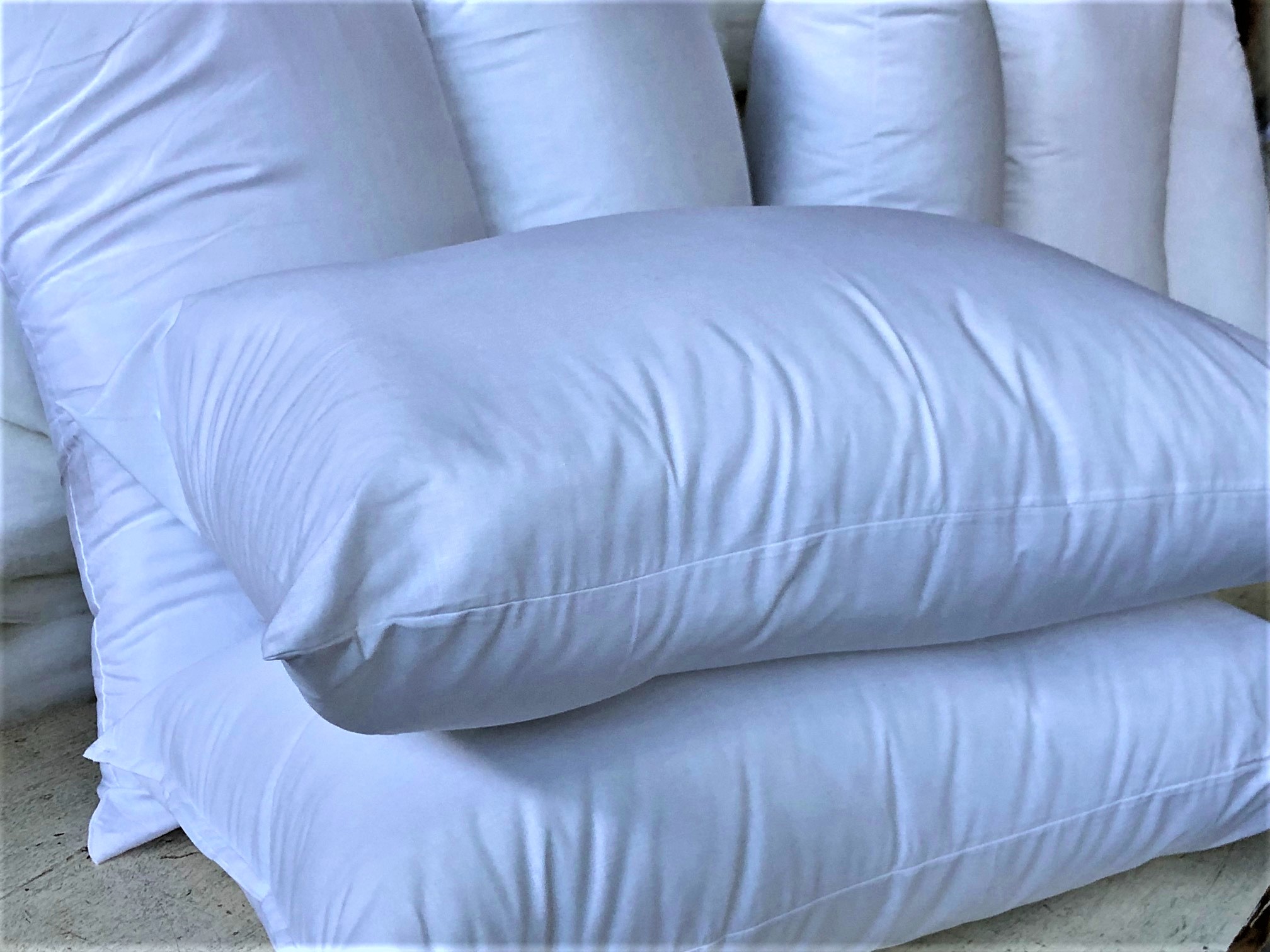 These hypoallergenic pillows are filled with hollow polyester staple fibre and covered with poly-cotton or pure cotton fabric. We offer pillows either as bed pillows or decorative cushions in various filling weights and sizes depending on the desired degree of support. The siliconised filling feels softer to the touch and can be washed at higher temperatures than standard polyester fibres thus enhancing the pillow’s durability.