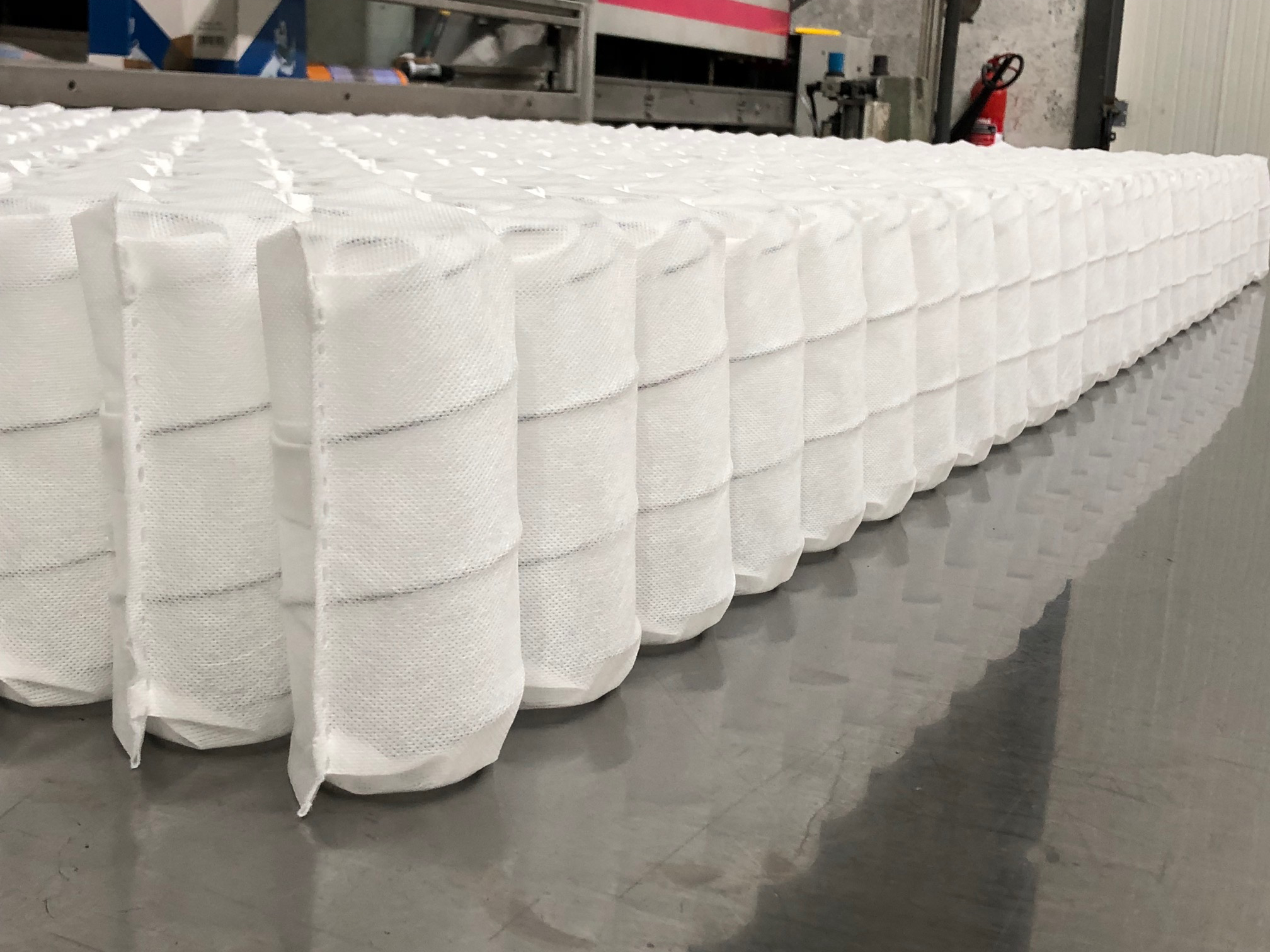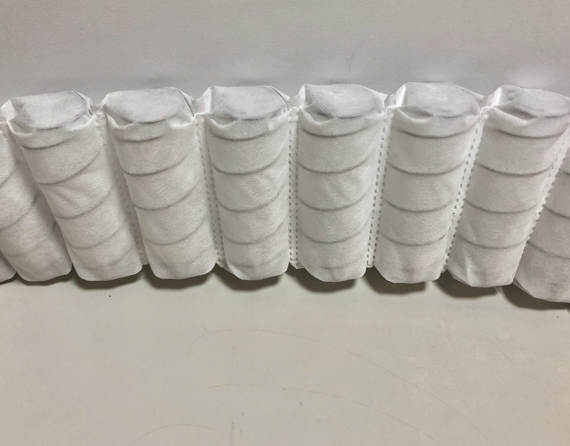 Pocket spring units are made of individual spring coils (rather than the interconnected ones) wrapped in a small non-woven fabric sack pocketed and held in a row among one another, forming the unit. Due to the fact that they can move independently, the total flexibility allows the mattress to respond to the sleeper’s precise shape, weight and size. Pocketed spring units are particularly known for their high point by point elasticity, leading to independent motion, thus avoiding disturbing the other sleeper when one sleeper moves. We manufacture pocketed units in different gauges, coil counts, heights and coil densities, hence allowing for different degrees of resistance and comfort.