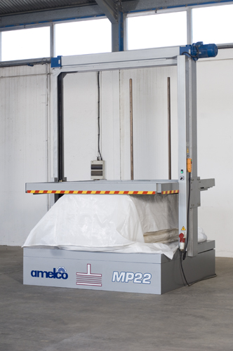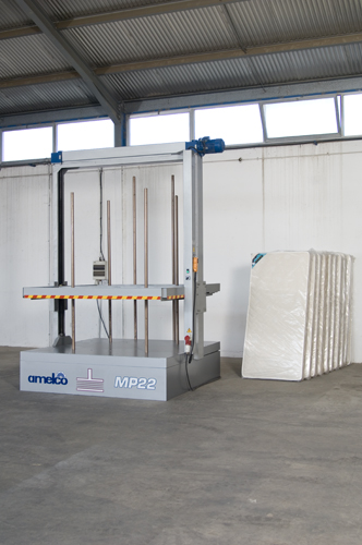 A safe, easy and convenient way to pack any type of mattresses (up to 200cm x 210cm) with or without innersprings into a bale without over-spillings. The matress press can pack 5 bales per hour.